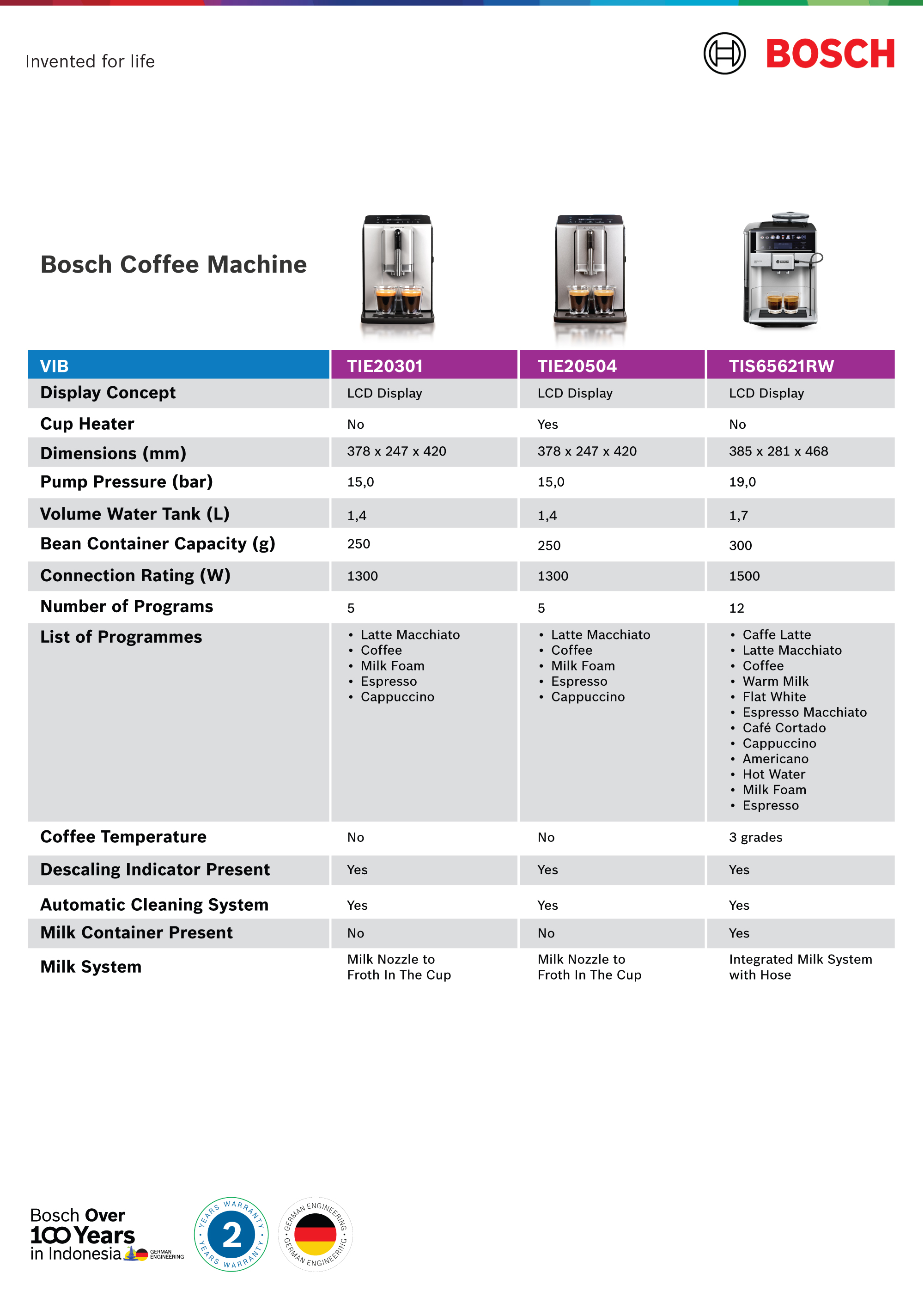 Persiapan Satu Sentuhan: Espresso, Cappuccino, Latte macchiato, dan Kopi dengan hanya satu sentuhan tombol. Nikmati berbagai minuman kopi favorit Anda dengan mudah. Cocok untuk Filter Air BRITA Intenza: Mengurangi kandungan kapur dalam air dan menyaring zat yang memengaruhi bau dan rasa kopi, sehingga menghasilkan kopi yang lebih segar.